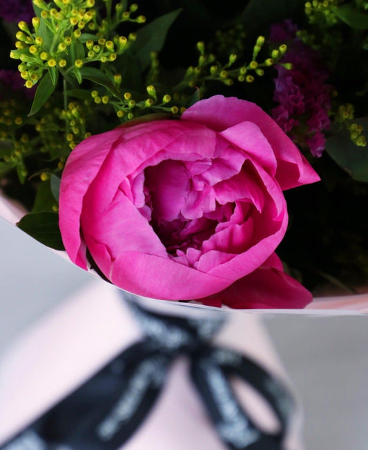 باقة أزهار الفاوانيا الأنيقة المربوطة يدوياً