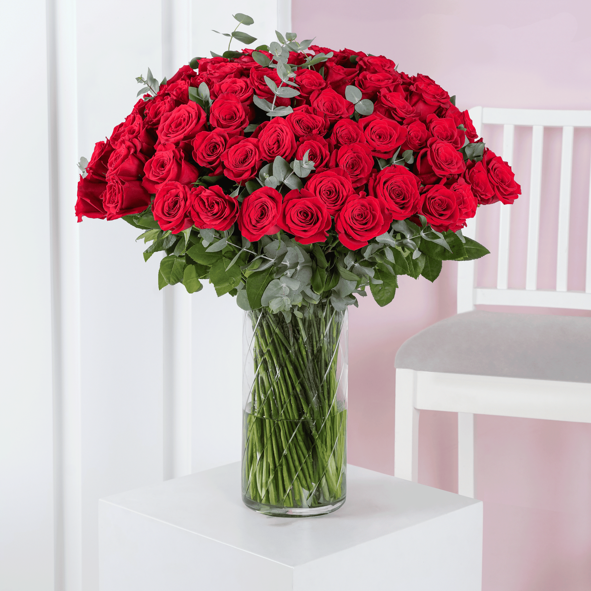 100 Long Stem Red Roses Vase